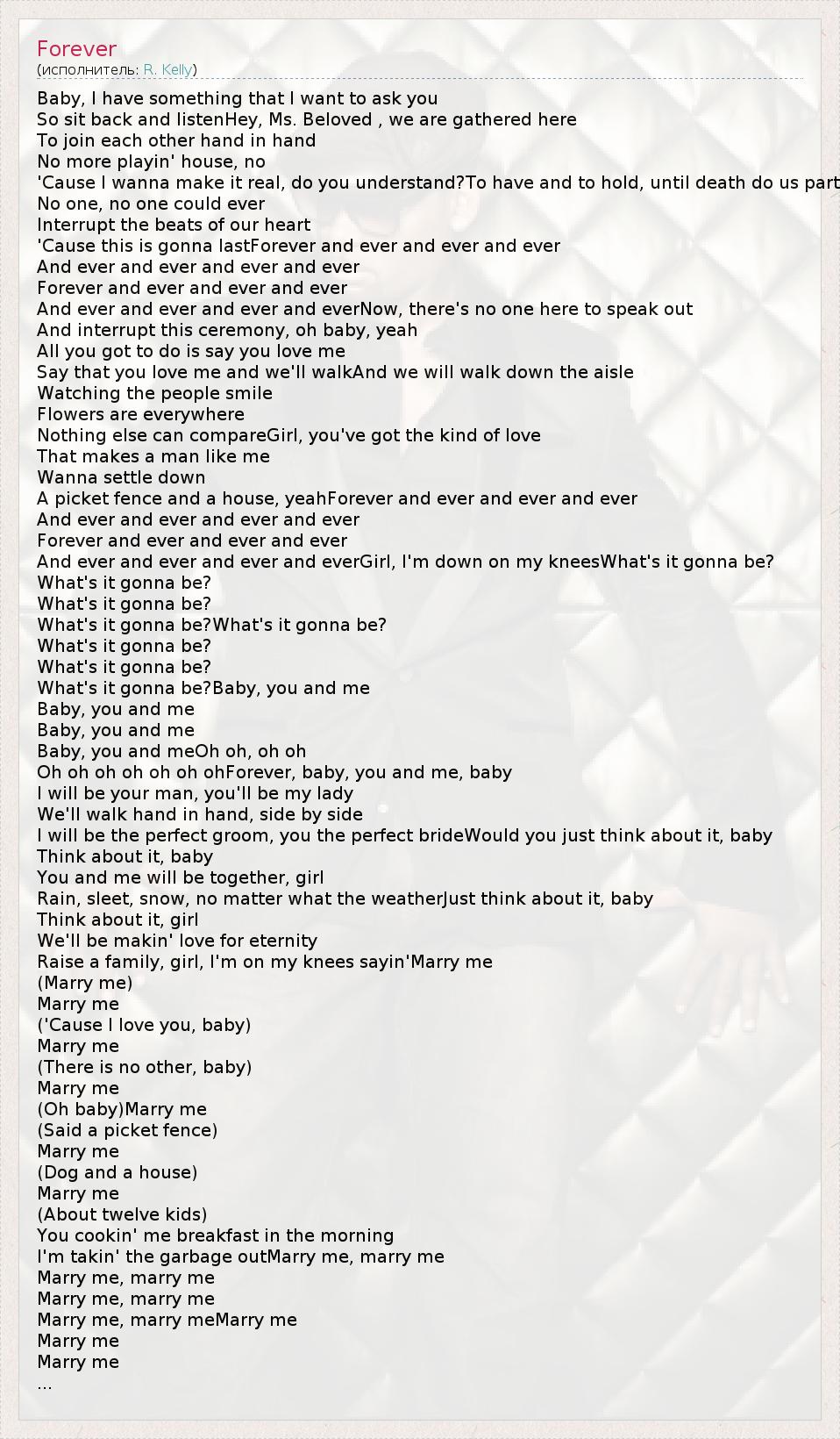 And ever and ever and ever and everGirl, I'm down on my kneesWhat's it gonna be?
