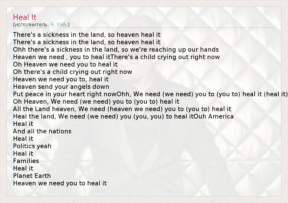 All the Land heaven, We need (heaven we need) you to (you to) heal it