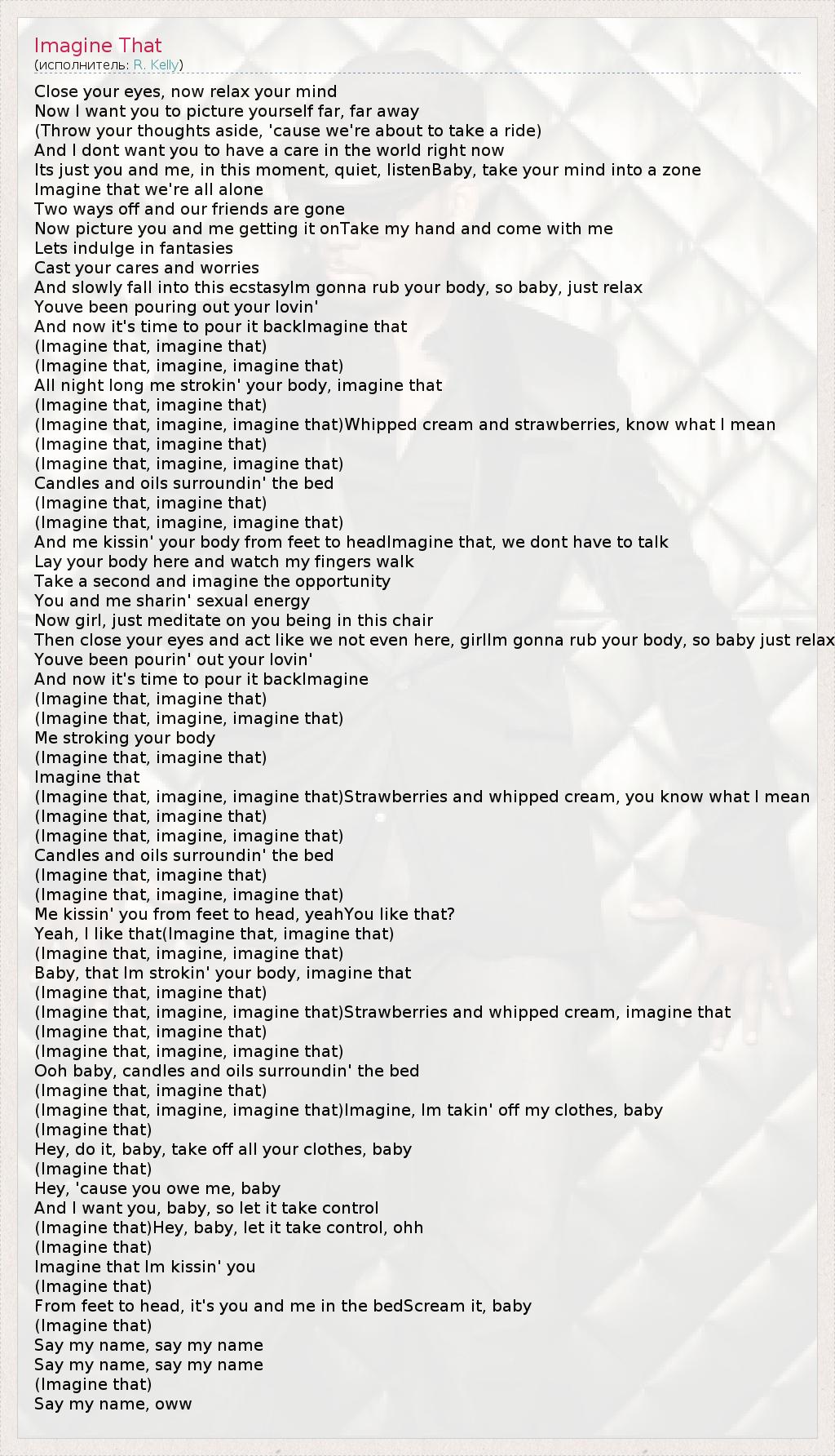 Then close your eyes and act like we not even here, girlIm gonna rub your body, so baby just relax
