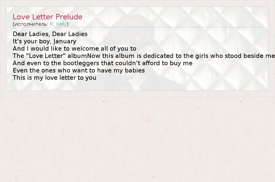 Dear Ladies, Dear Ladies It's your boy, January And I would like to welcome all of you to The "Love Letter" albumNow this album is dedicated to the girls who stood beside me And even to the bootleggers that couldn't afford to buy me Even the ones who want to have my babies This is my love letter to you