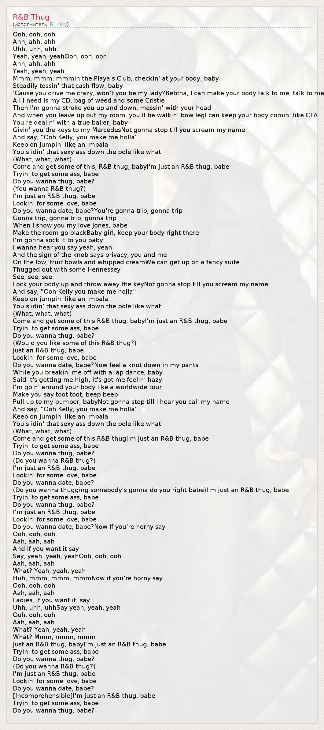 А как ты думаешь, о чем песня "R&B Thug" ?