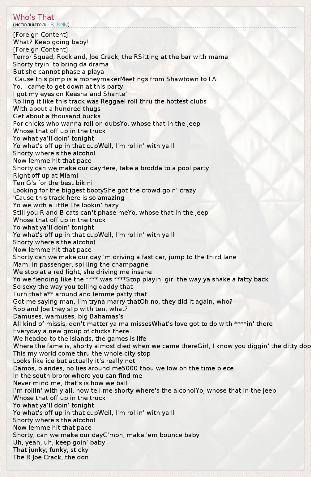 А как ты думаешь, о чем песня "Who's That" ?