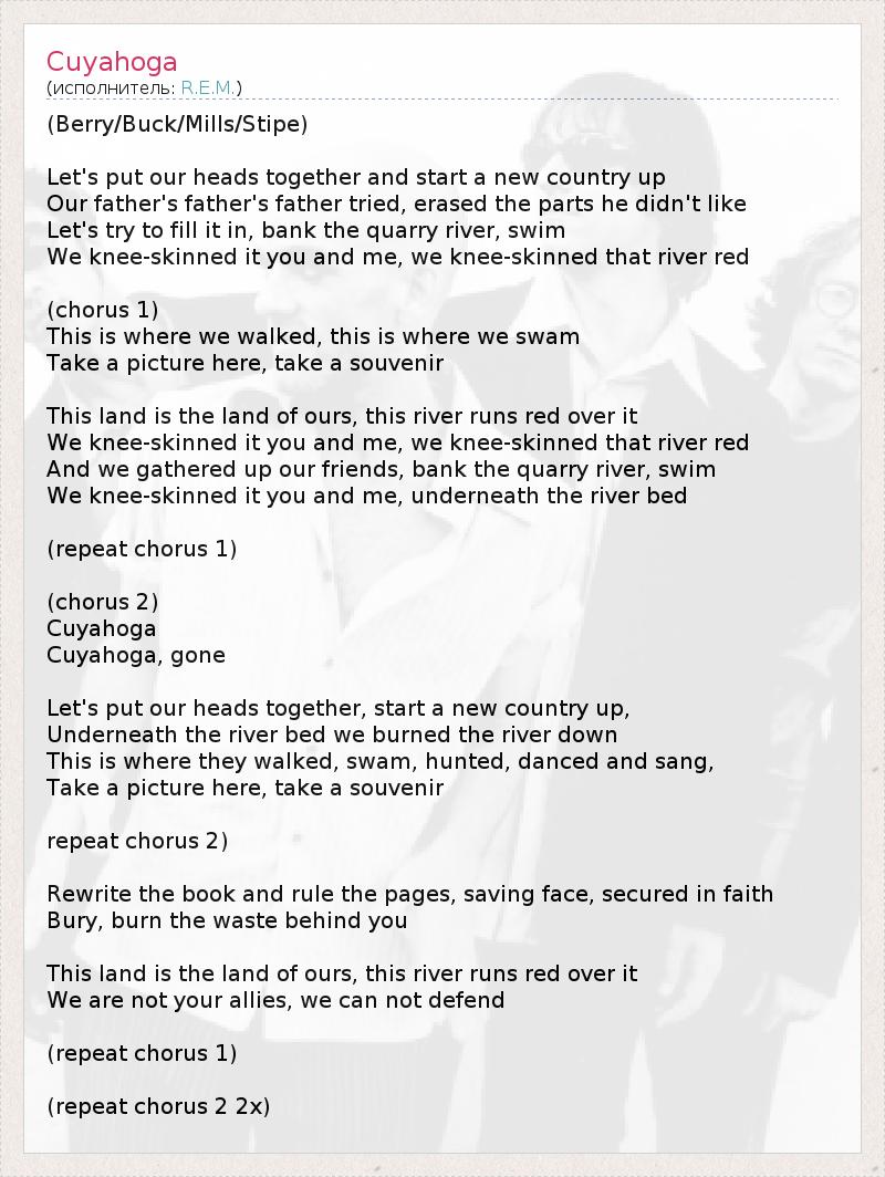 А как ты думаешь, о чем песня "Cuyahoga" ?