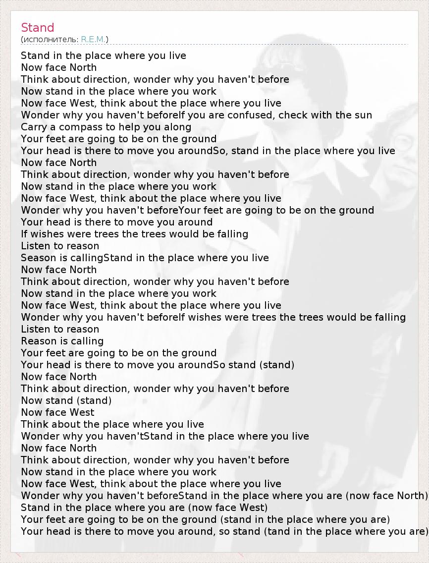 А как ты думаешь, о чем песня "Stand" ?