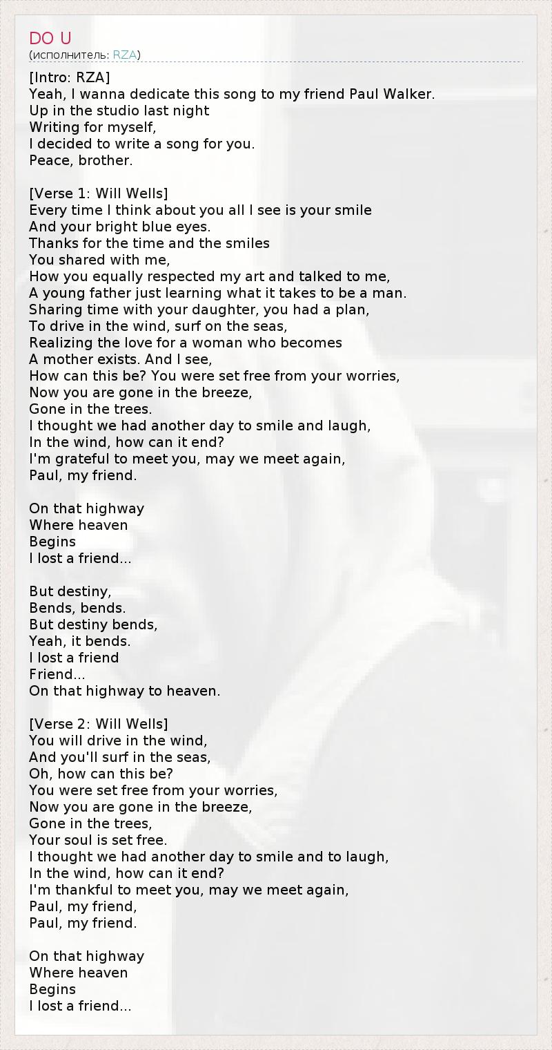 Да, я хочу посвятить эту песню своему другу Полу Уолкеру.  1