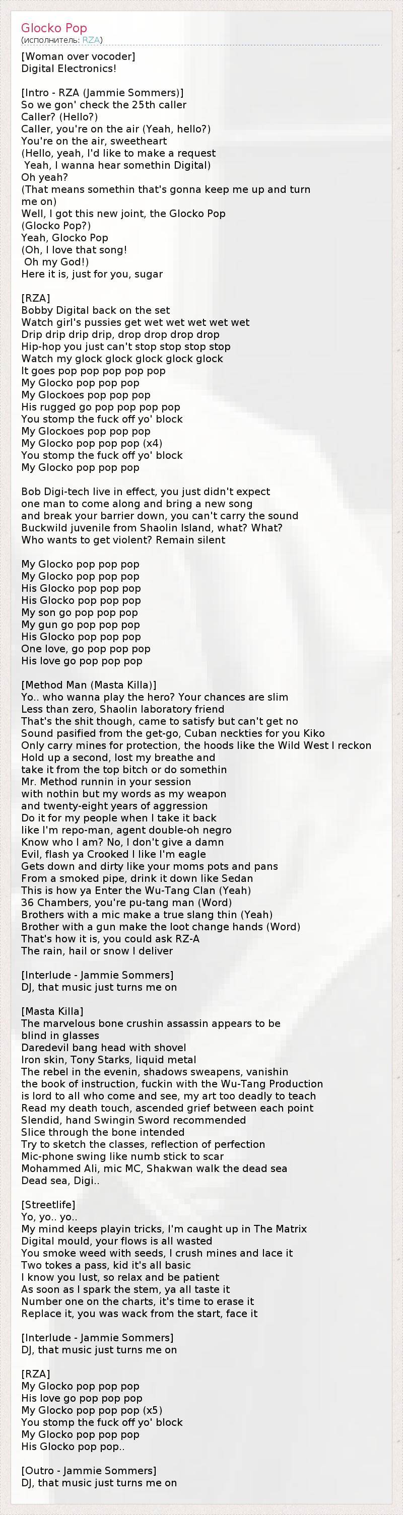 А как ты думаешь, о чем песня "Glocko Pop" ?