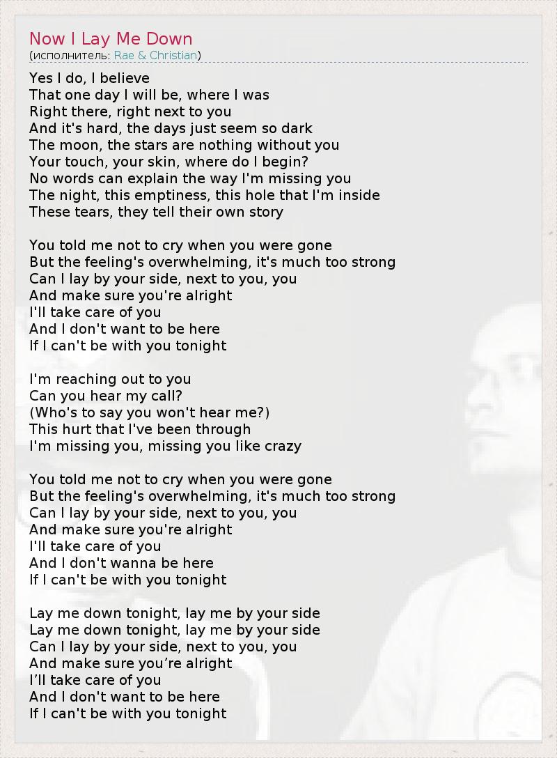 Lay me down tonight, lay me by your side