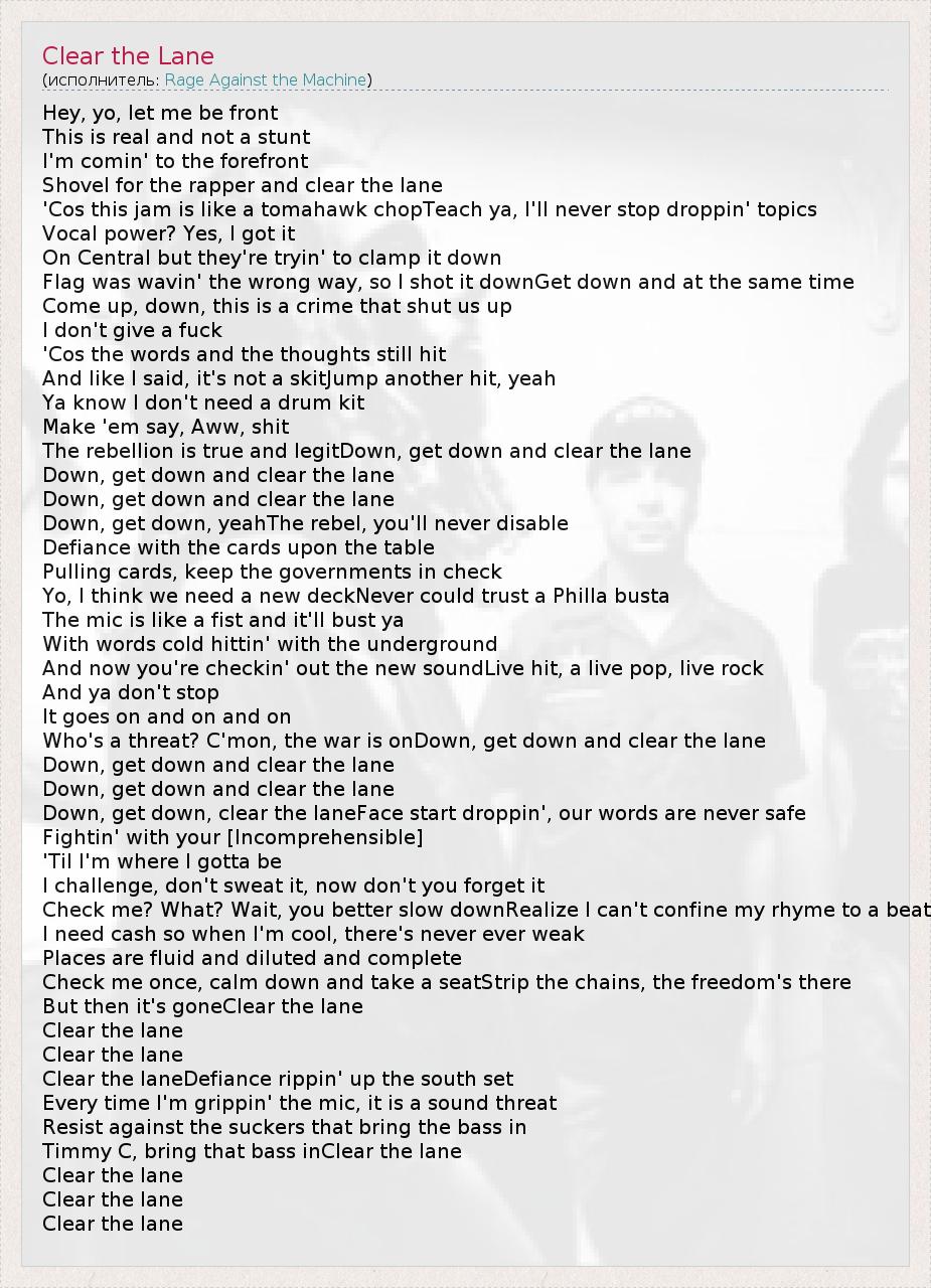 А как ты думаешь, о чем песня "Clear the Lane" ?
