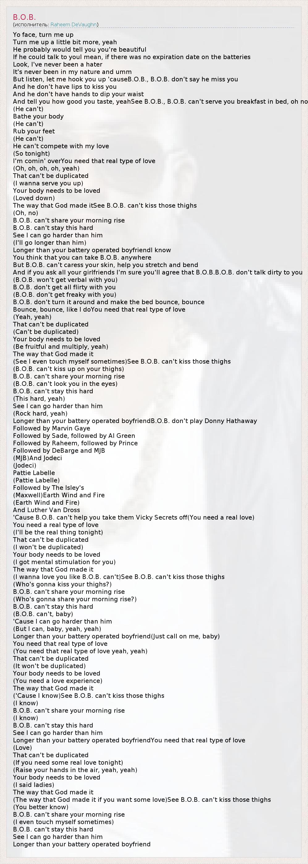 Longer than your battery operated boyfriendB.O.B. don't play Donny Hathaway