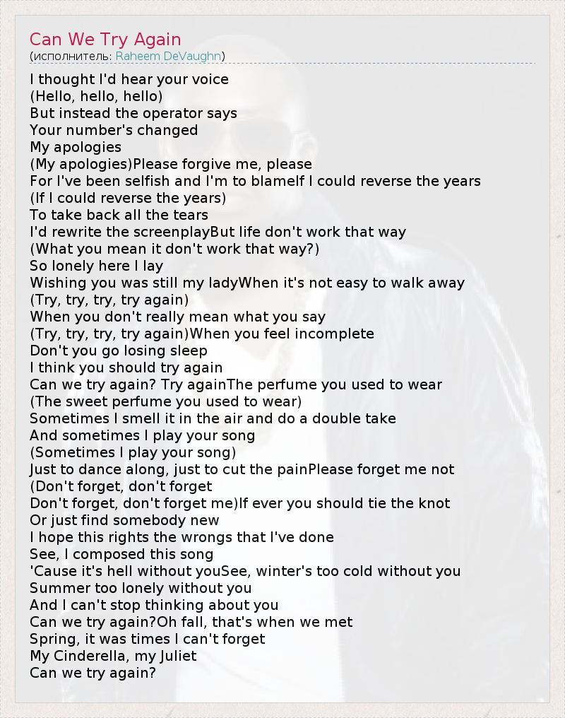 А как ты думаешь, о чем песня "Can We Try Again" ?