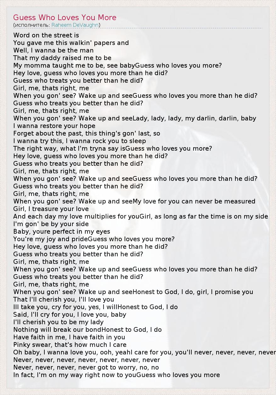 А как ты думаешь, о чем песня "Guess Who Loves You More" ?