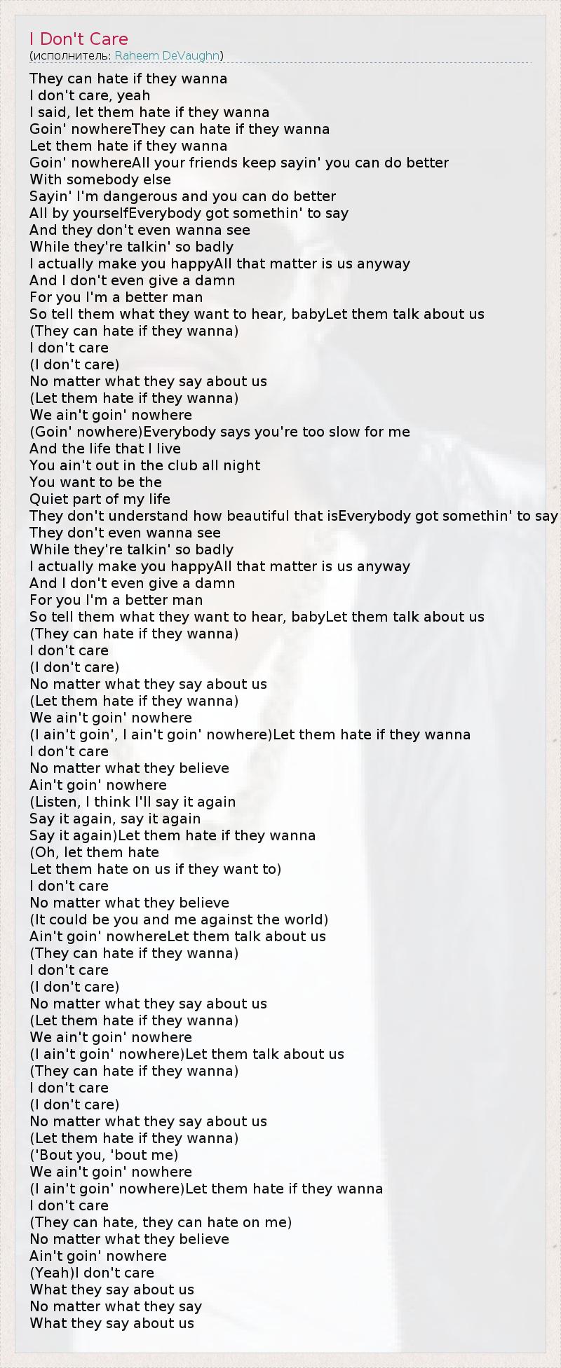 А как ты думаешь, о чем песня "I Don't Care" ?