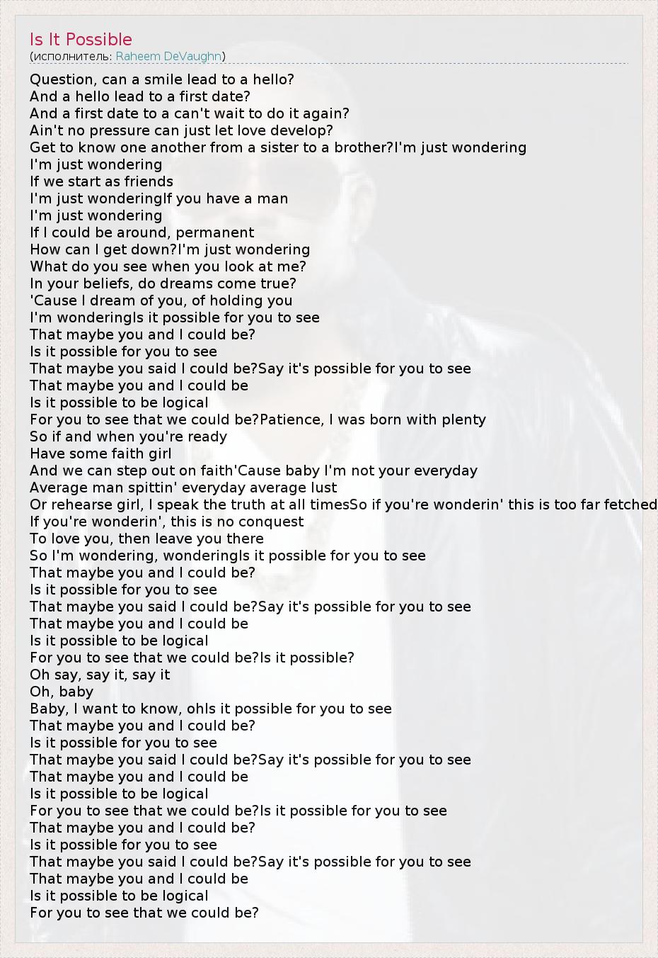 А как ты думаешь, о чем песня "Is It Possible" ?