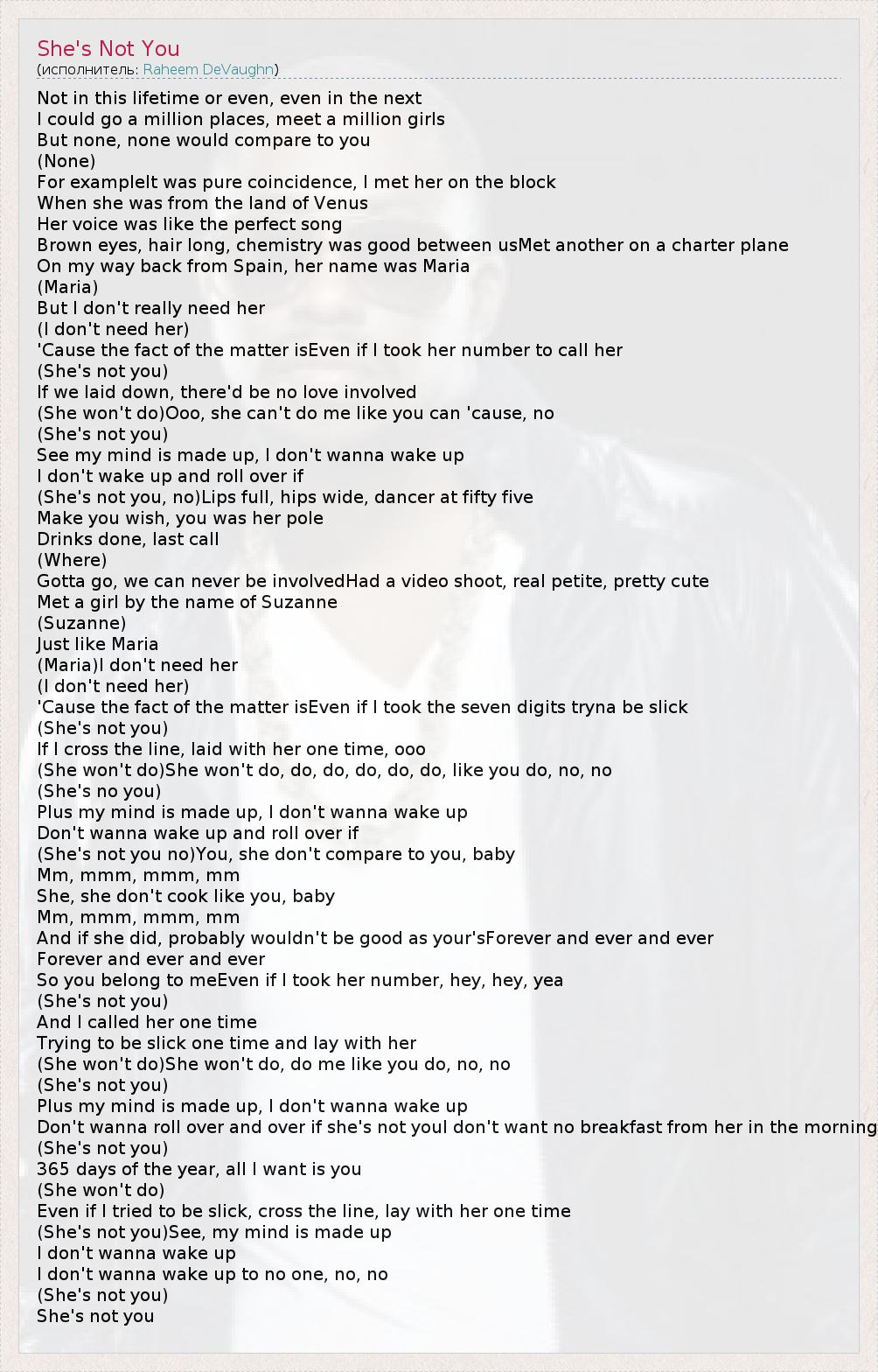 А как ты думаешь, о чем песня "She's Not You" ?