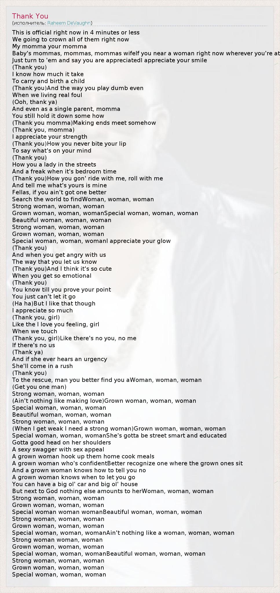 Это интересно:Raheem DeVaughn - американский исполнитель и автор песен. Его дебютный альбом "The Love Experience" (2005) достиг 46го места в чарте альбомов Billboard 200 с такими синглами, как "You" и "Guess Who Loves You More". В 2008 году последовал альбом "Love Behind the Melody", в том же году он был номинирован на премию Грэмми, как лучший исполнитель R'n'B с синглом "Woman". DeVaughn, сын джазового виолончелиста Abdul Wadud, родился... продолжение