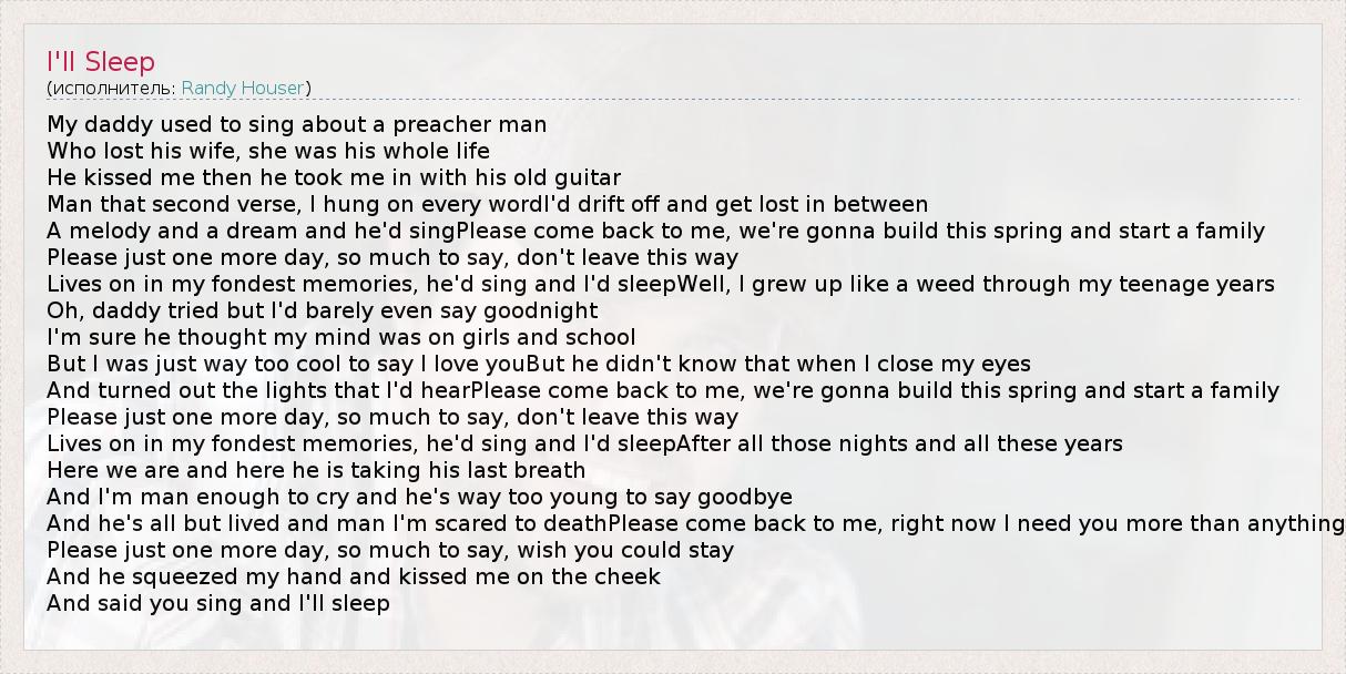 А как ты думаешь, о чем песня "I'll Sleep" ?