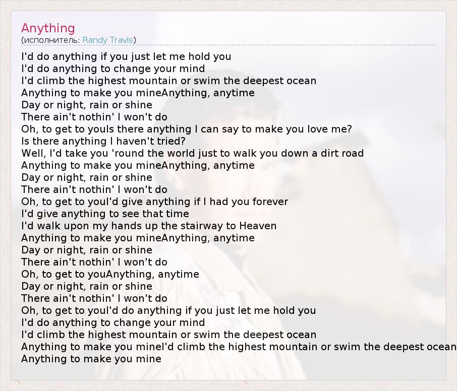 Anything to make you mineI'd climb the highest mountain or swim the deepest ocean