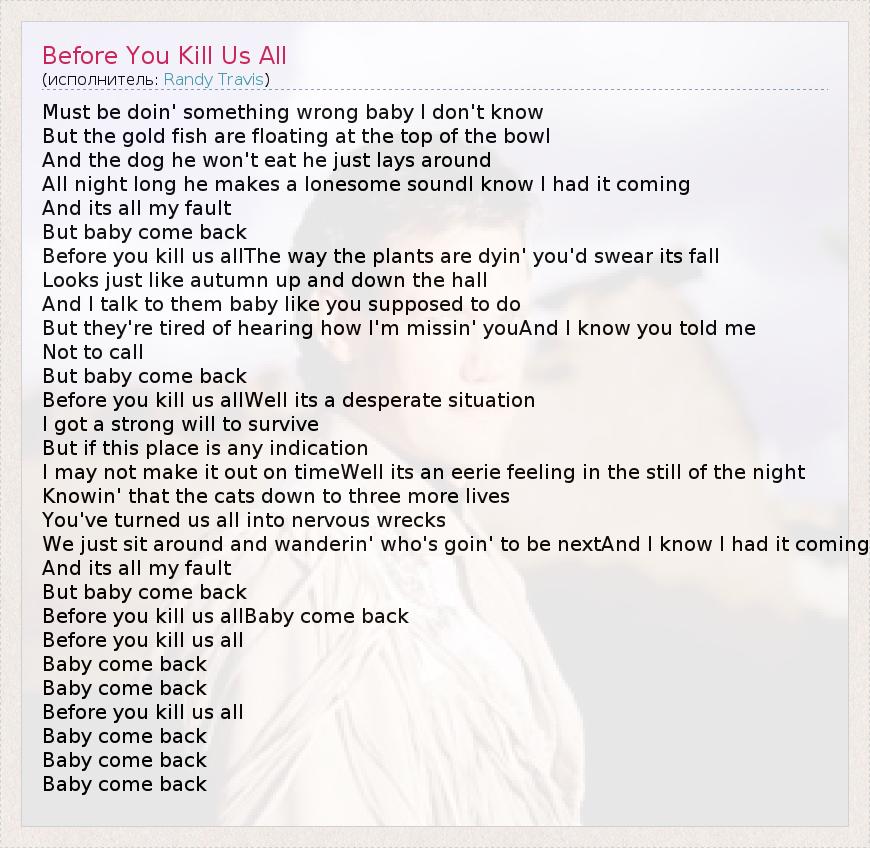 А как ты думаешь, о чем песня "Before You Kill Us All" ?