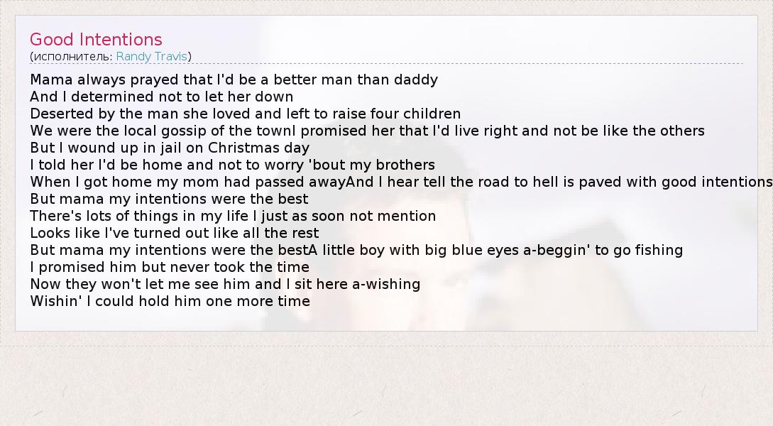А как ты думаешь, о чем песня "Good Intentions" ?