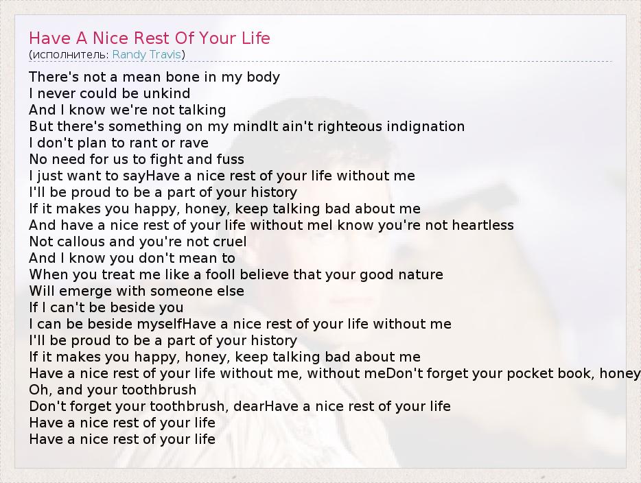 ГлавнаяИсполнителиRandy TravisHave A Nice Rest Of Your Life