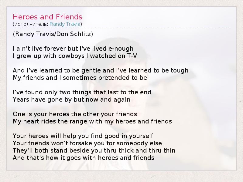А как ты думаешь, о чем песня "Heroes and Friends" ?