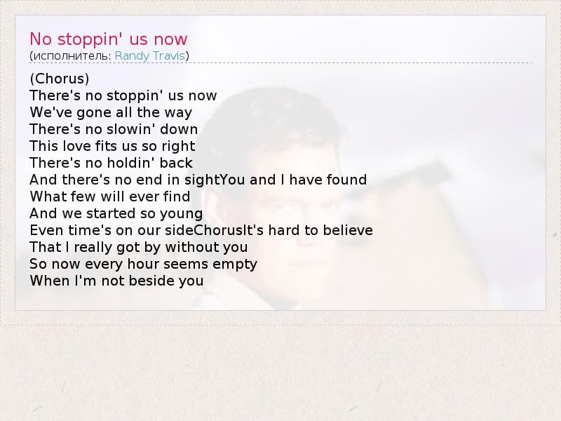 А как ты думаешь, о чем песня "No stoppin' us now" ?