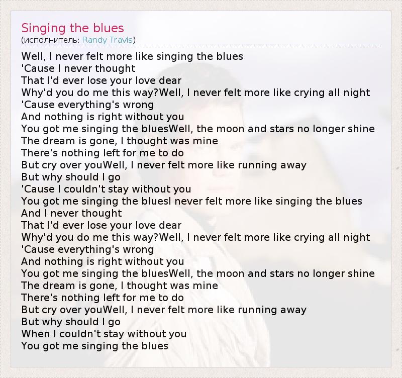 You got me singing the bluesI never felt more like singing the blues