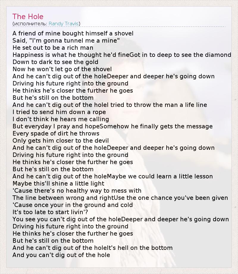 You see you can't dig out of the holeDeeper and deeper he's going down