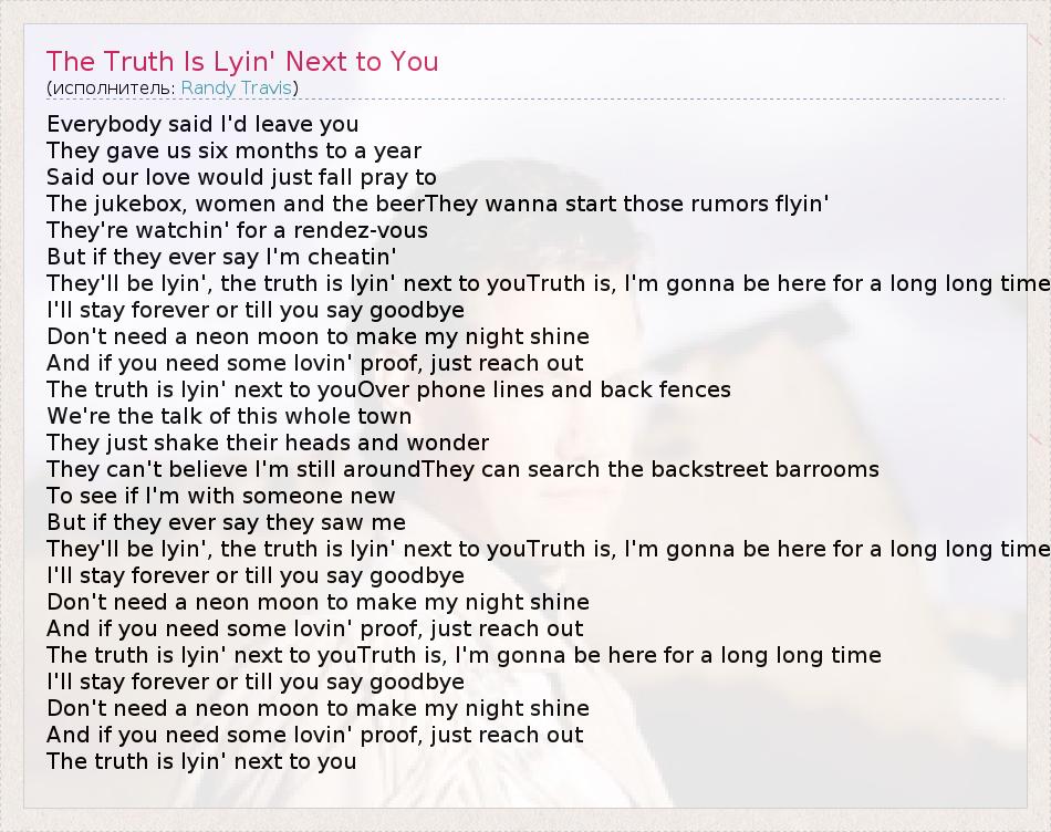 ГлавнаяИсполнителиRandy TravisThe Truth Is Lyin' Next to You