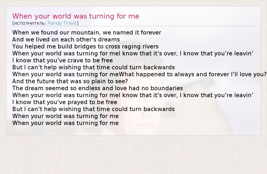 ГлавнаяИсполнителиRandy TravisWhen your world was turning for me