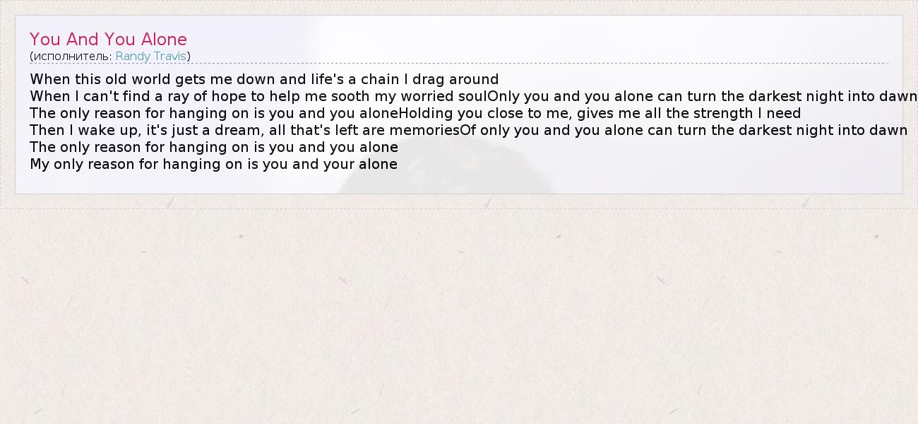 А как ты думаешь, о чем песня "You And You Alone" ?