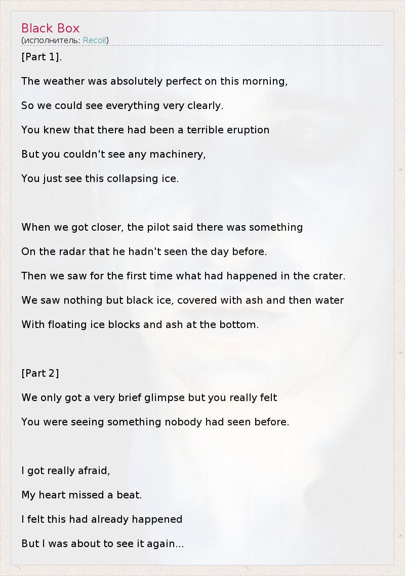 А как ты думаешь, о чем песня "Black Box" ?