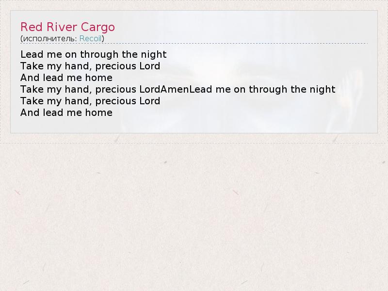 А как ты думаешь, о чем песня "Red River Cargo" ?