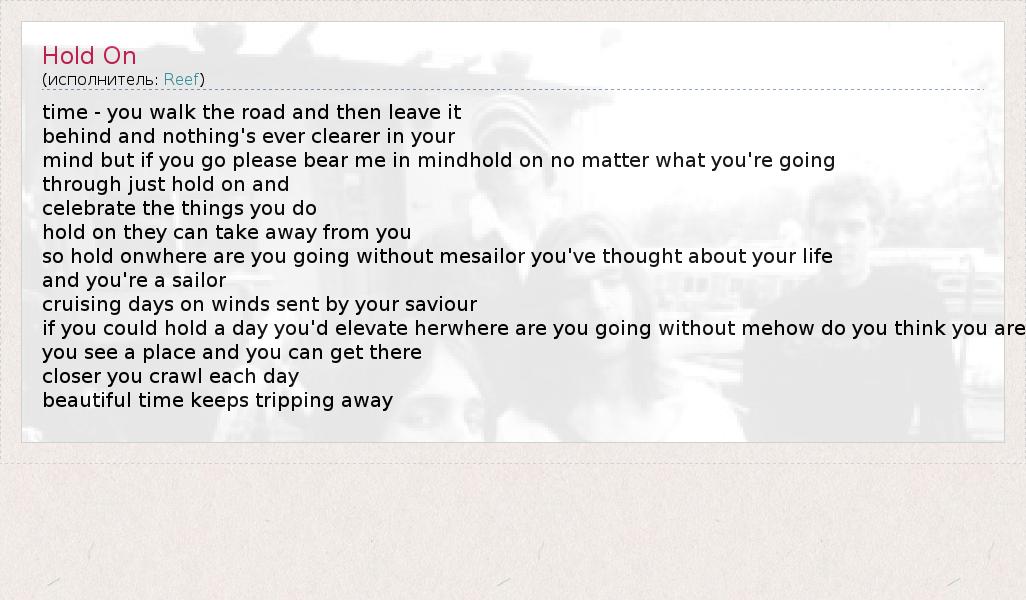 Это интересно:Четверо музыкантов, основавших эту команду, выросли в окрестностях Гластонбери. Гэри Стрингер и Джек Бессант были соседями и вместе начинали музицировать в одной фанк-хардкор-кавер-банде. К 1992 году они вместе с Кенвином Хаусом и Домиником Гринсмитом перебрались в Лондон, где играли всякие вещи Джими Хендрикса, "Massive attack", "Jane's addiction". Постепенно "REEF" перешли на современную... продолжение