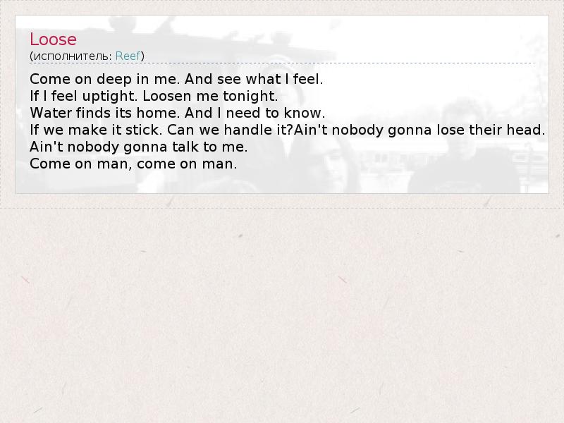 Это интересно:Четверо музыкантов, основавших эту команду, выросли в окрестностях Гластонбери. Гэри Стрингер и Джек Бессант были соседями и вместе начинали музицировать в одной фанк-хардкор-кавер-банде. К 1992 году они вместе с Кенвином Хаусом и Домиником Гринсмитом перебрались в Лондон, где играли всякие вещи Джими Хендрикса, "Massive attack", "Jane's addiction". Постепенно "REEF" перешли на современную... продолжение