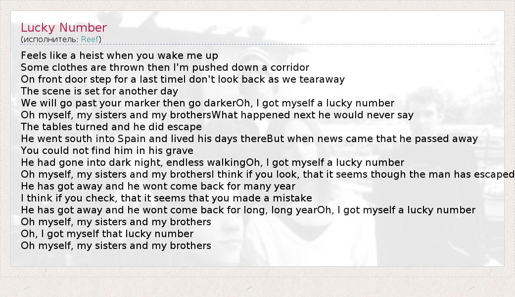 А как ты думаешь, о чем песня "Lucky Number" ?