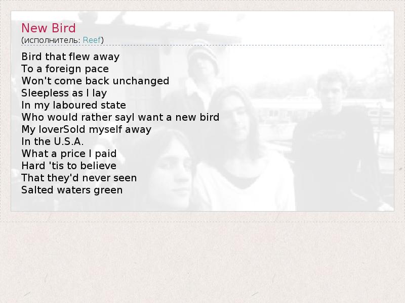 Это интересно:Четверо музыкантов, основавших эту команду, выросли в окрестностях Гластонбери. Гэри Стрингер и Джек Бессант были соседями и вместе начинали музицировать в одной фанк-хардкор-кавер-банде. К 1992 году они вместе с Кенвином Хаусом и Домиником Гринсмитом перебрались в Лондон, где играли всякие вещи Джими Хендрикса, "Massive attack", "Jane's addiction". Постепенно "REEF" перешли на современную... продолжение