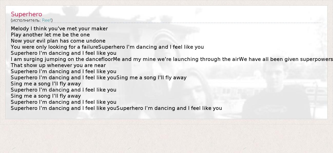Superhero I'm dancing and I feel like youSuperhero I'm dancing and I feel like you