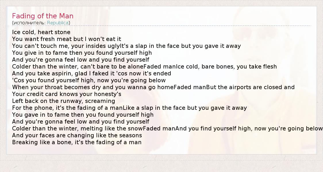 А как ты думаешь, о чем песня "Fading of the Man" ?