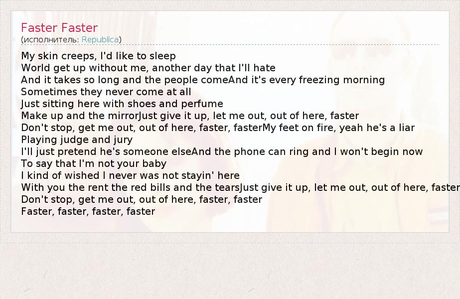 А как ты думаешь, о чем песня "Faster Faster" ?