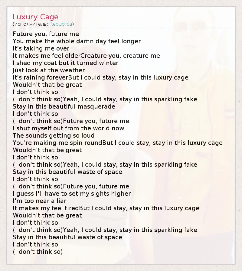 А как ты думаешь, о чем песня "Luxury Cage" ?