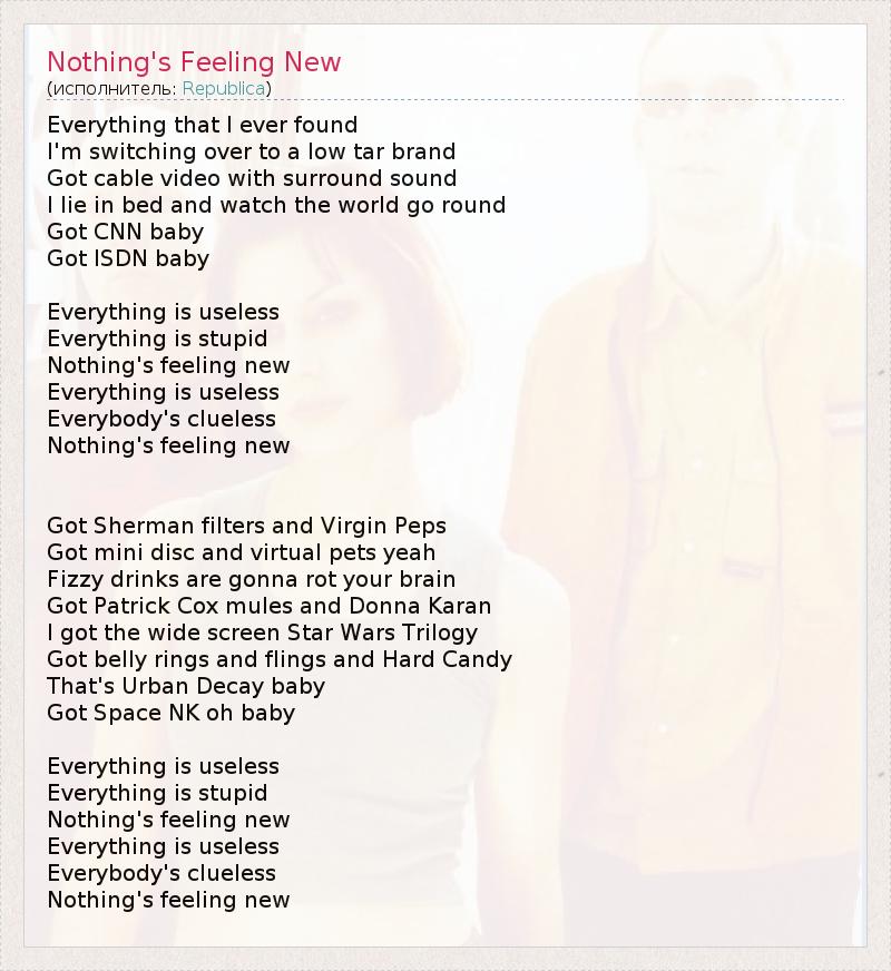 А как ты думаешь, о чем песня "Nothing's Feeling New" ?