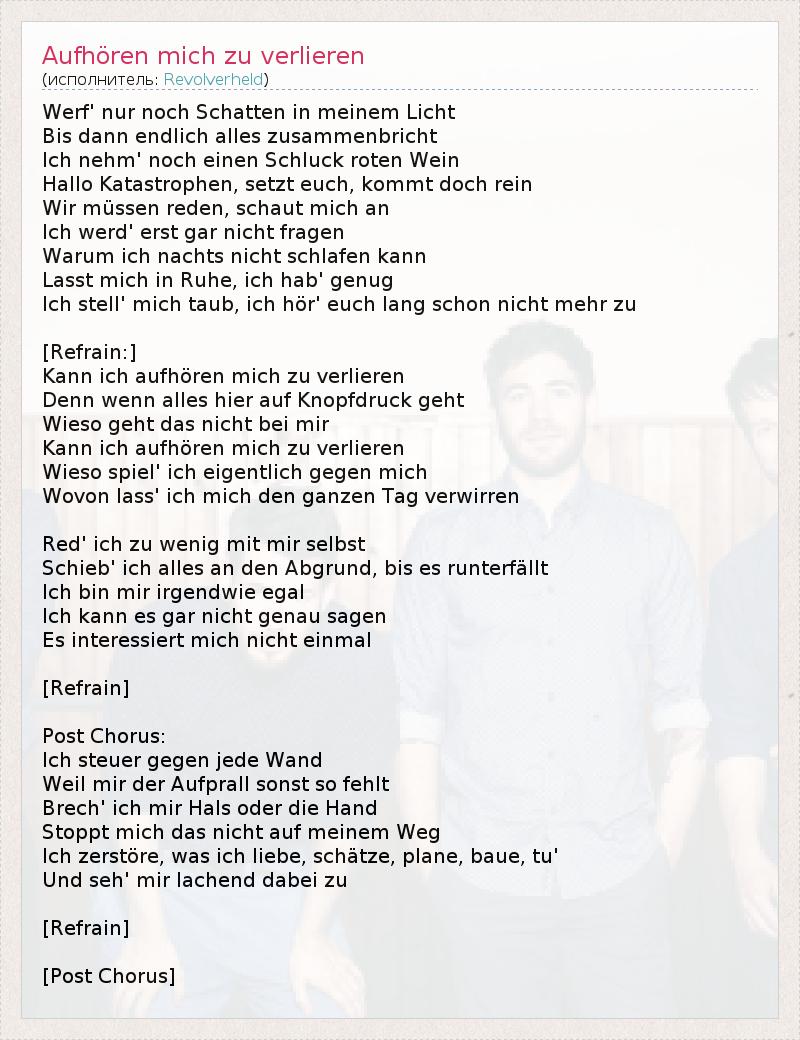 ГлавнаяИсполнителиRevolverheldAufhören mich zu verlieren