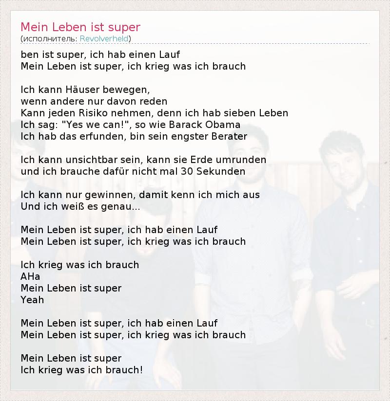 А как ты думаешь, о чем песня "Mein Leben ist super" ?