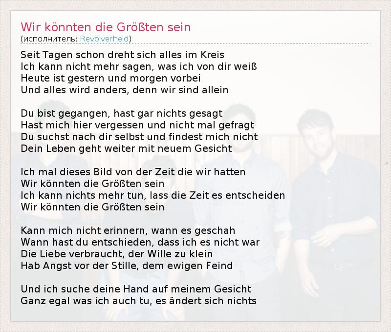ГлавнаяИсполнителиRevolverheldWir könnten die Größten sein