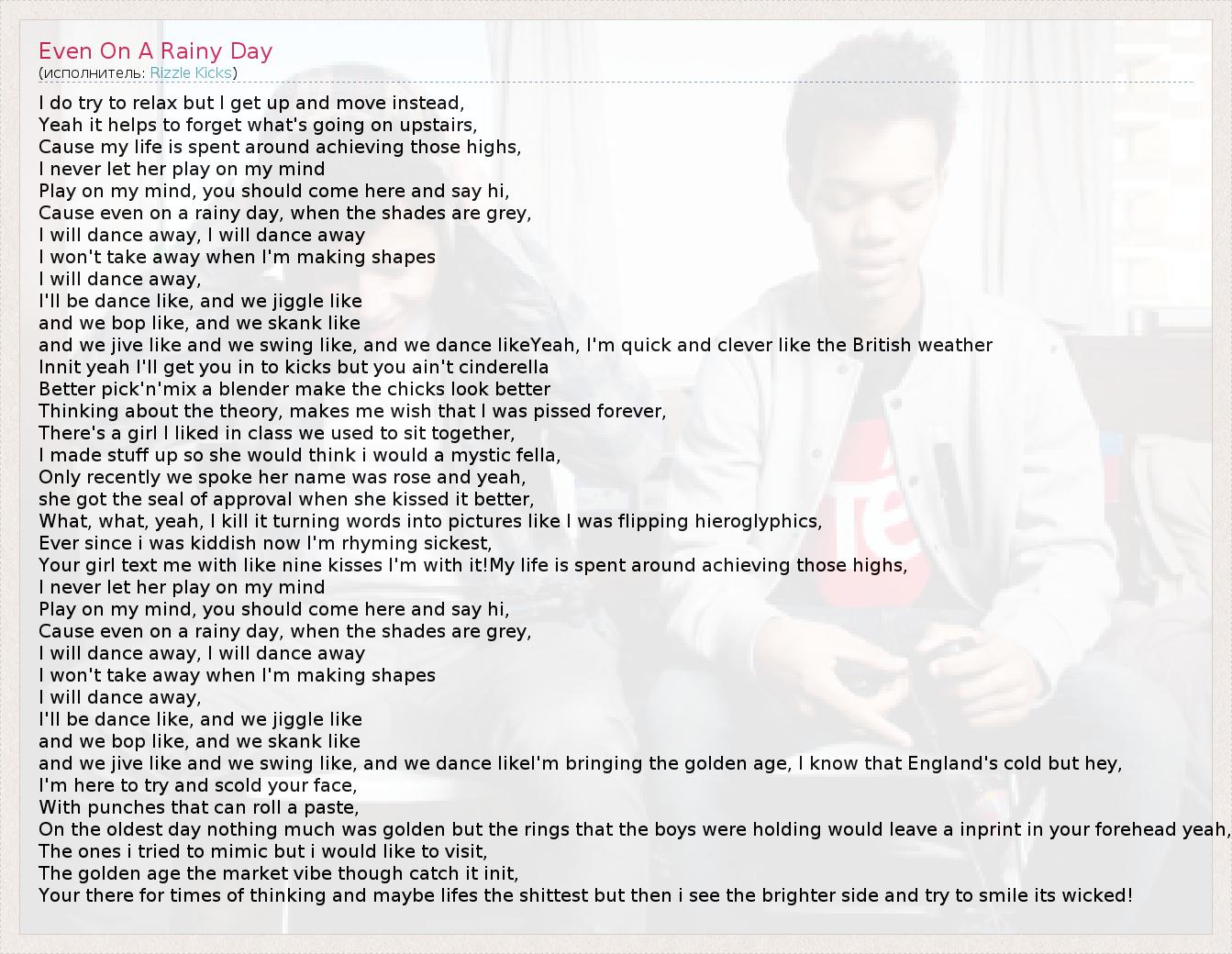 А как ты думаешь, о чем песня "Even On A Rainy Day" ?