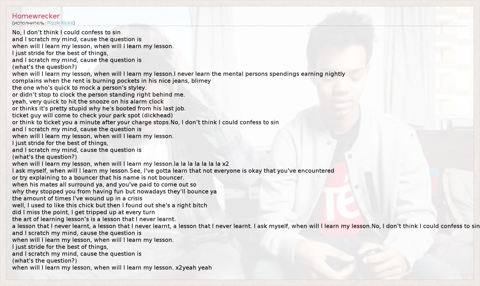 a lesson that I never learnt, a lesson that I never learnt, a lesson that I never learnt. I ask myself, when will I learn my lesson.No, I don't think I could confess to sin