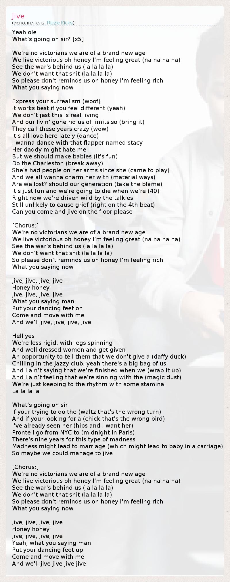 И мы будем танцевать джайв, джайв, джайв, джайв