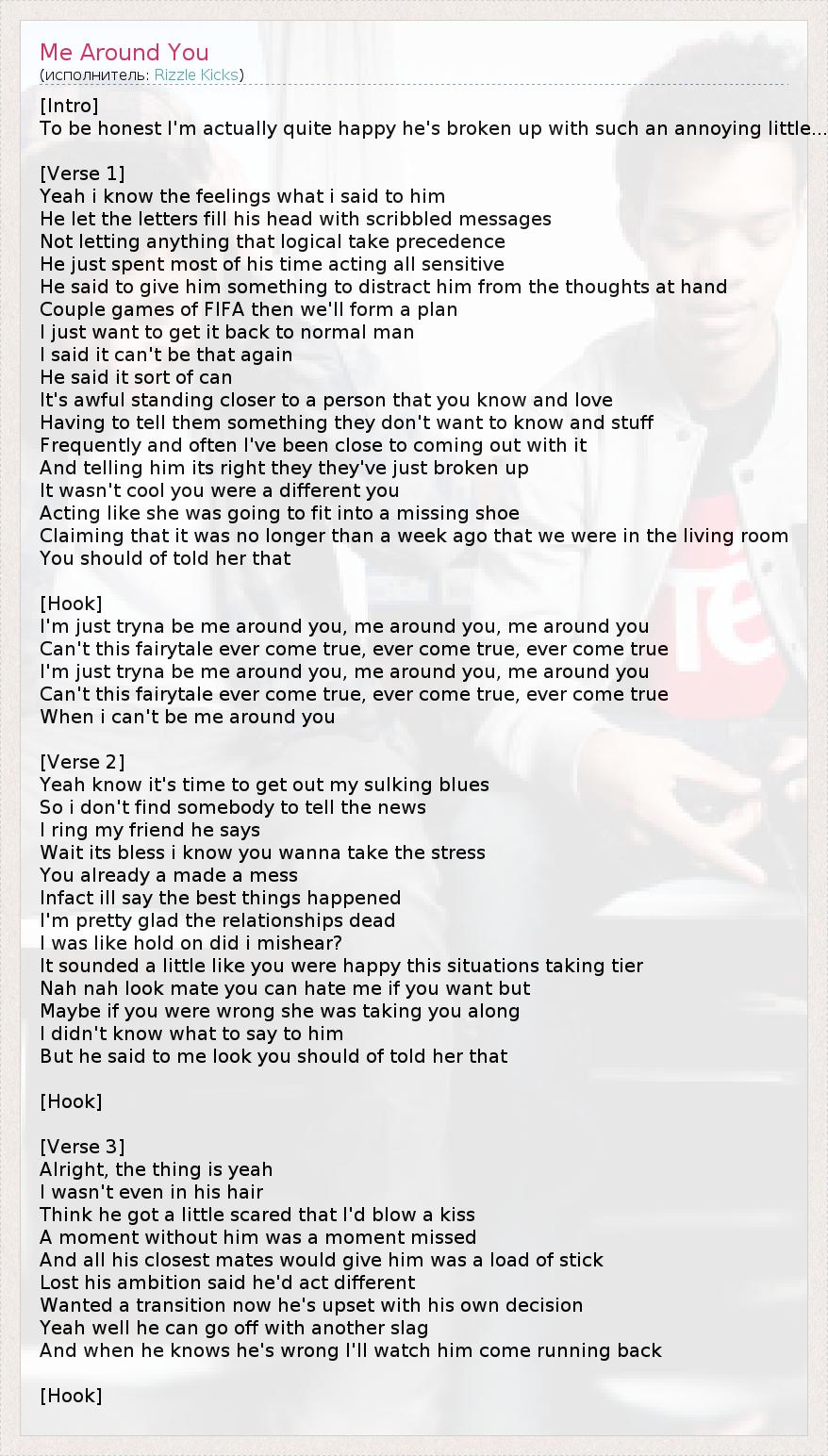 Это интересно:Rizzle Kicks — молодой хип хоп дуэт из Англии. Формально их группа появилась примерно в 1996 году, когда Джордан и Харли целыми днями играли на заднем дворе, будучи еще совсем детьми. Спустя 8 лет, после переезда в Брайтон, они снова встретились, а еще через 4 года — вместе закончили один колледж.Вскоре мальчики поняли насколько хорошо сочетаются их стили и официально стали называть себя Rizzle... продолжение
