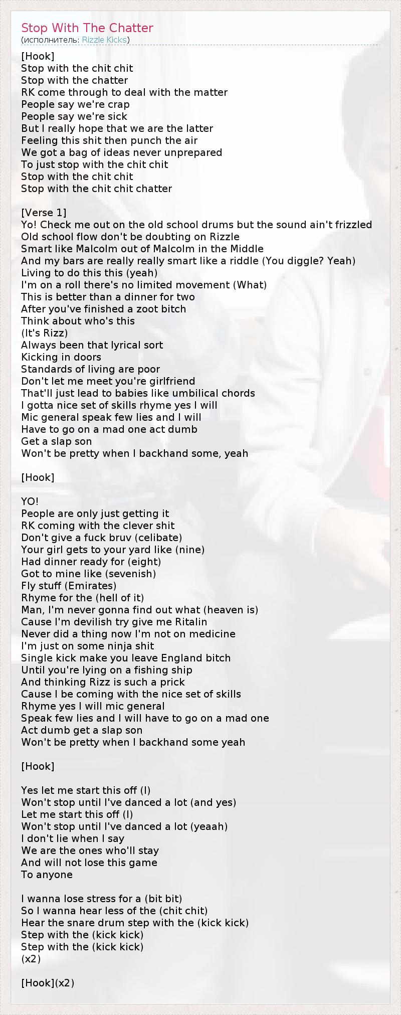 А как ты думаешь, о чем песня "Stop With The Chatter" ?